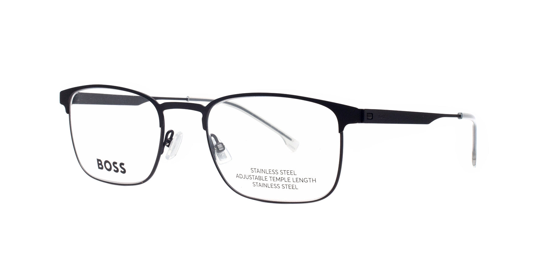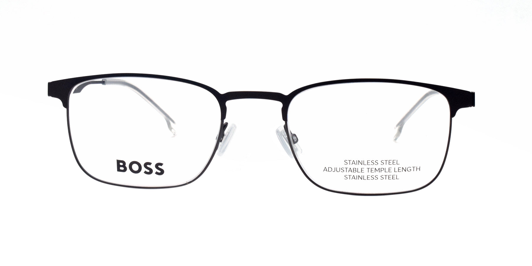 The BOSS BOSS 1644 SVK 54/21 150 is a sleek and stylish full-frame metal eyeglass perfect for men. Its moving nose pads ensure a comfortable fit, while the rectangular shape adds a modern touch. Professional and expertly crafted with a black finish.