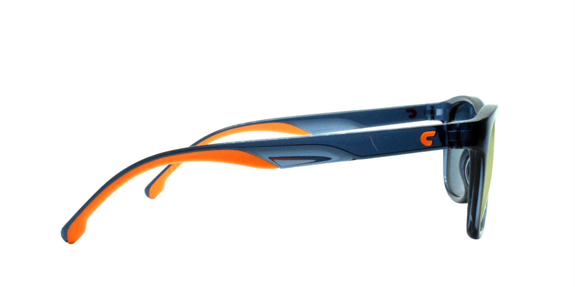 The CARRERA CA PRW 1/S/IN PJPUZ 52/21 145 features high quality plastics in blue and orange, creating a stylish full frame with a fixed nose. The square shape provides a modern look while the CARRERA brand ensures durability and expert design. Perfect for those looking for a trendy and reliable pair of glasses.