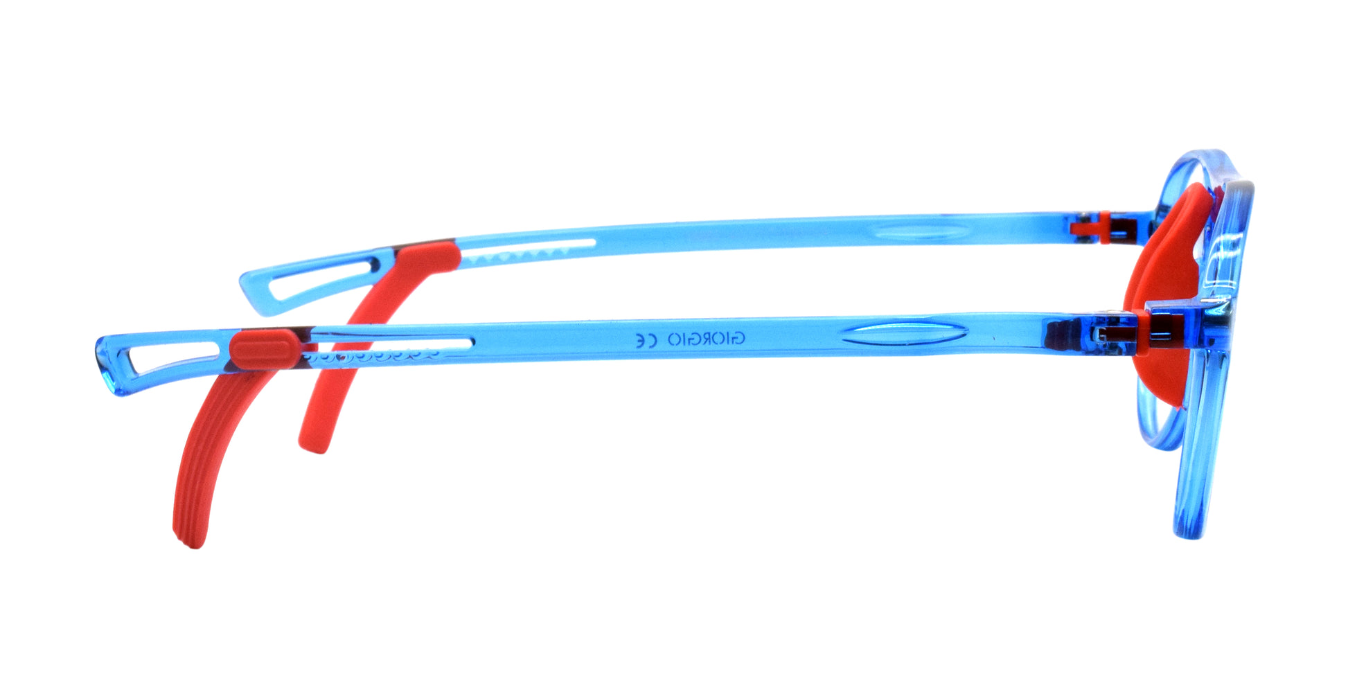 The GIORGIO KIDS 19982 C4 CLIP-ON 44/17 133 features a durable acetate frame with an aviator design, perfect for children. The full frame and fixed nose provide a comfortable and secure fit, while the vibrant Blue color adds a stylish touch. Keep your child's eyes protected and looking cool with these clip-on Frame.