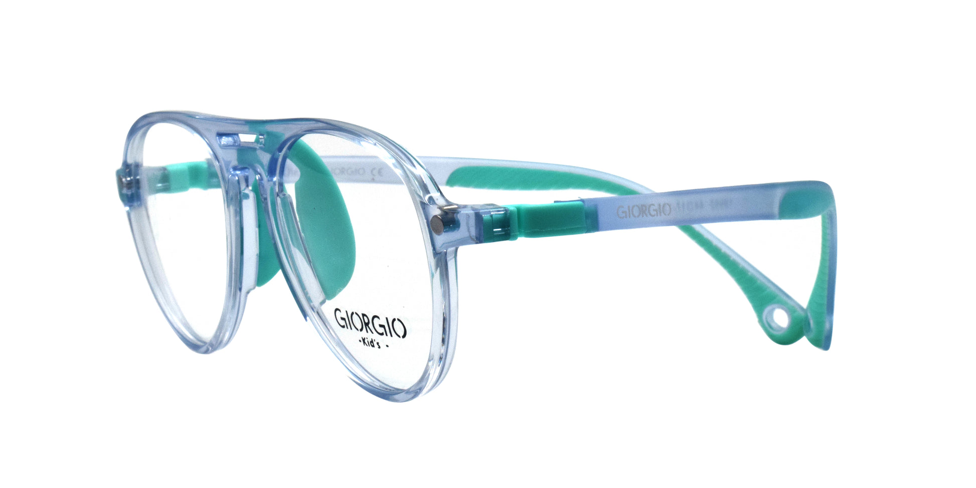 The GIORGIO KIDS 19992 C6 CLIP-ON 44/17 133 provides a full frame made of durable and lightweight acetate, fixed nose piece, and an aviator design for a stylish and comfortable fit. Perfect for children, the Light Blue frame adds a touch of elegance to any outfit.