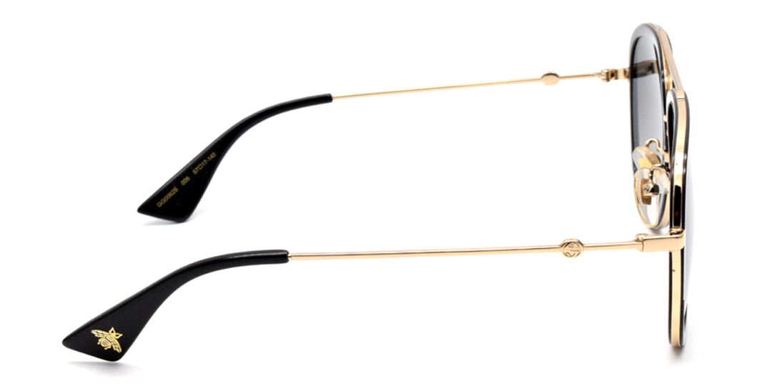 The GUCCI GG0062S 006 57/17 140 is a stylish, unisex aviator frame made with a combination of metal and acetate materials. The striking gold accents add a touch of luxury, while the full frame design provides maximum coverage. The unique moving numbers detail adds an extra level of sophistication to this timeless piece.