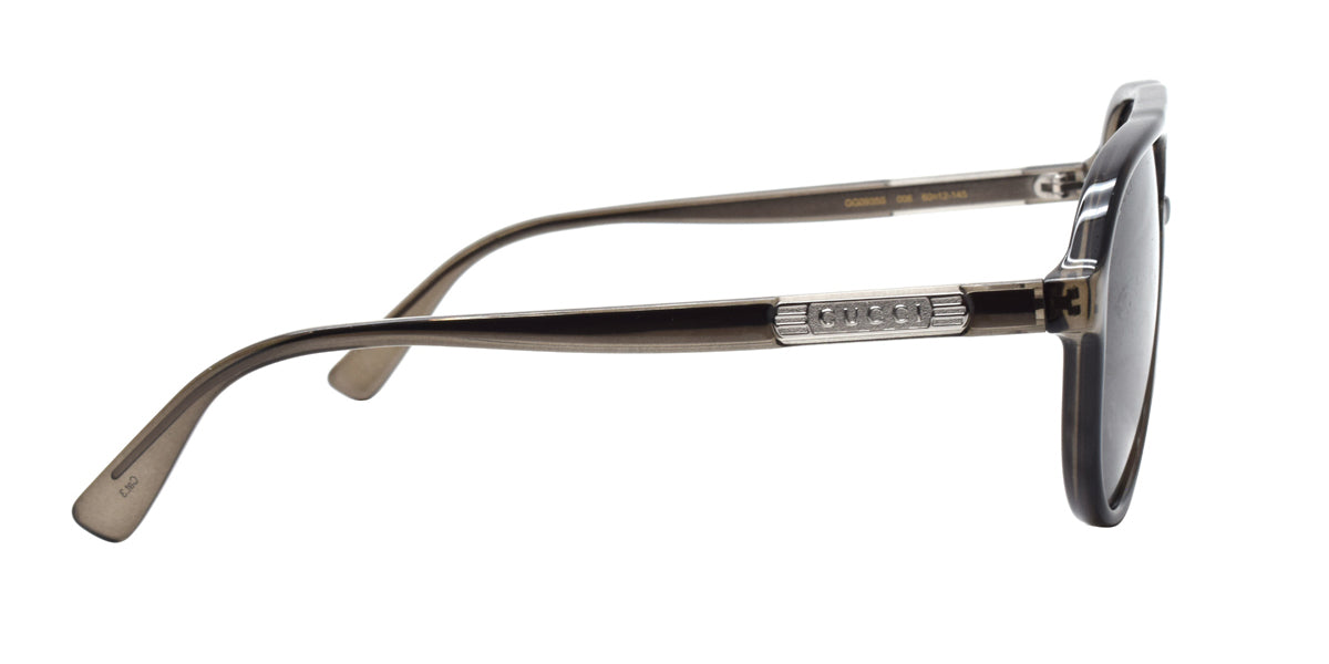 The GUCCI GG0935S 006 60/12 145 is a sleek and modern full frame aviator sunglasses designed for men. Crafted from high-quality acetate, it offers both style and durability. Its grey color adds a cool vibe to any outfit while the fixed lenses provide excellent protection for your eyes.