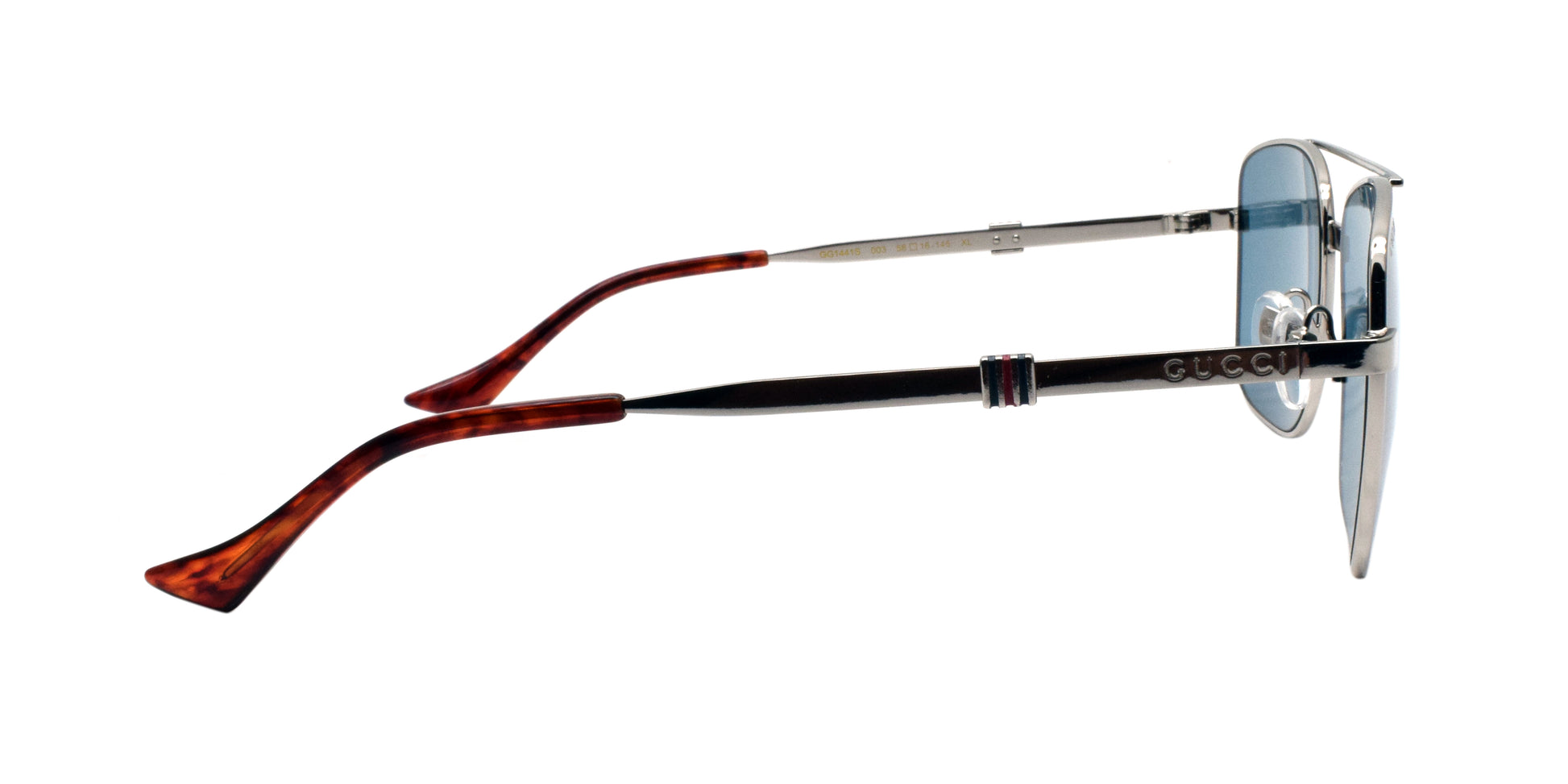 Introducing GUCCI GG1441S, a sleek and stylish men's full frame sunglasses made with gunmetal metals. Designed with a square frame and moving nose PAD, these sunglasses offer both function and fashion. Upgrade your eyewear with GUCCI GG1441S.
