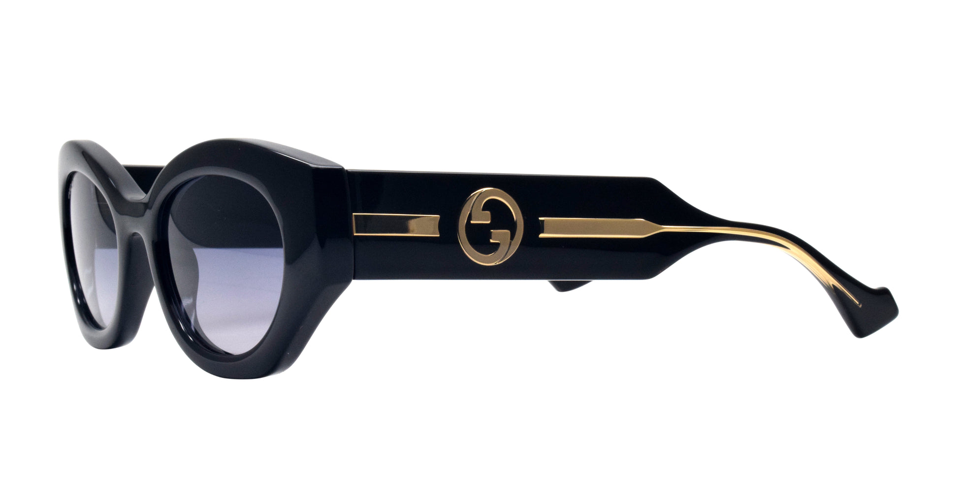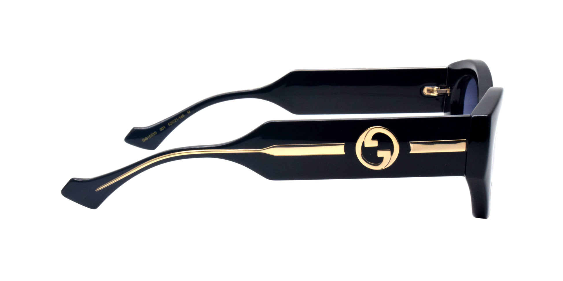 Expertly crafted by GUCCI, the GG1553S 004 52/21 145 sunglasses feature a luxurious acetate frame in a Black color, complemented by a fixed nose and cat eye shape. These stylish sunglasses for women offer full coverage and comfort, making them the perfect accessory for any occasion.