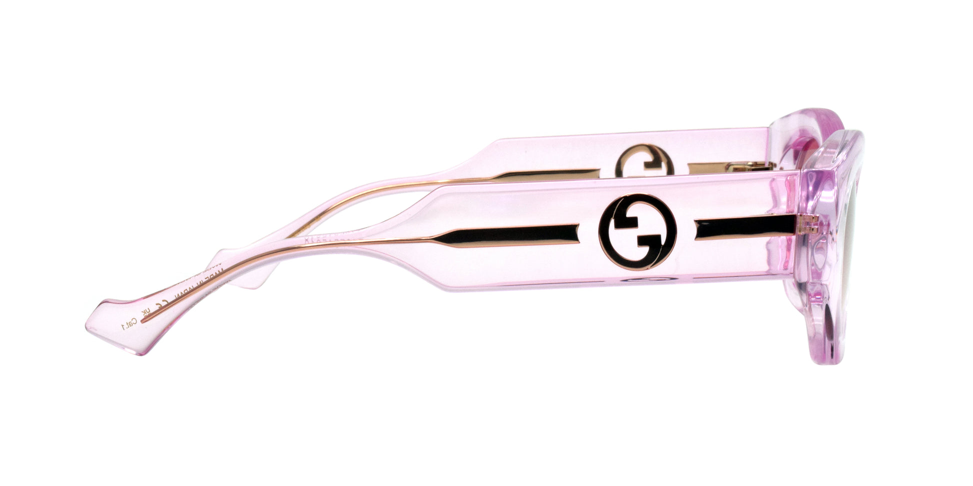 Expertly crafted by GUCCI, the GG1553S 003 52/21 145 sunglasses feature a luxurious acetate frame in a Pink color, complemented by a fixed nose and cat eye shape. These stylish sunglasses for women offer full coverage and comfort, making them the perfect accessory for any occasion.