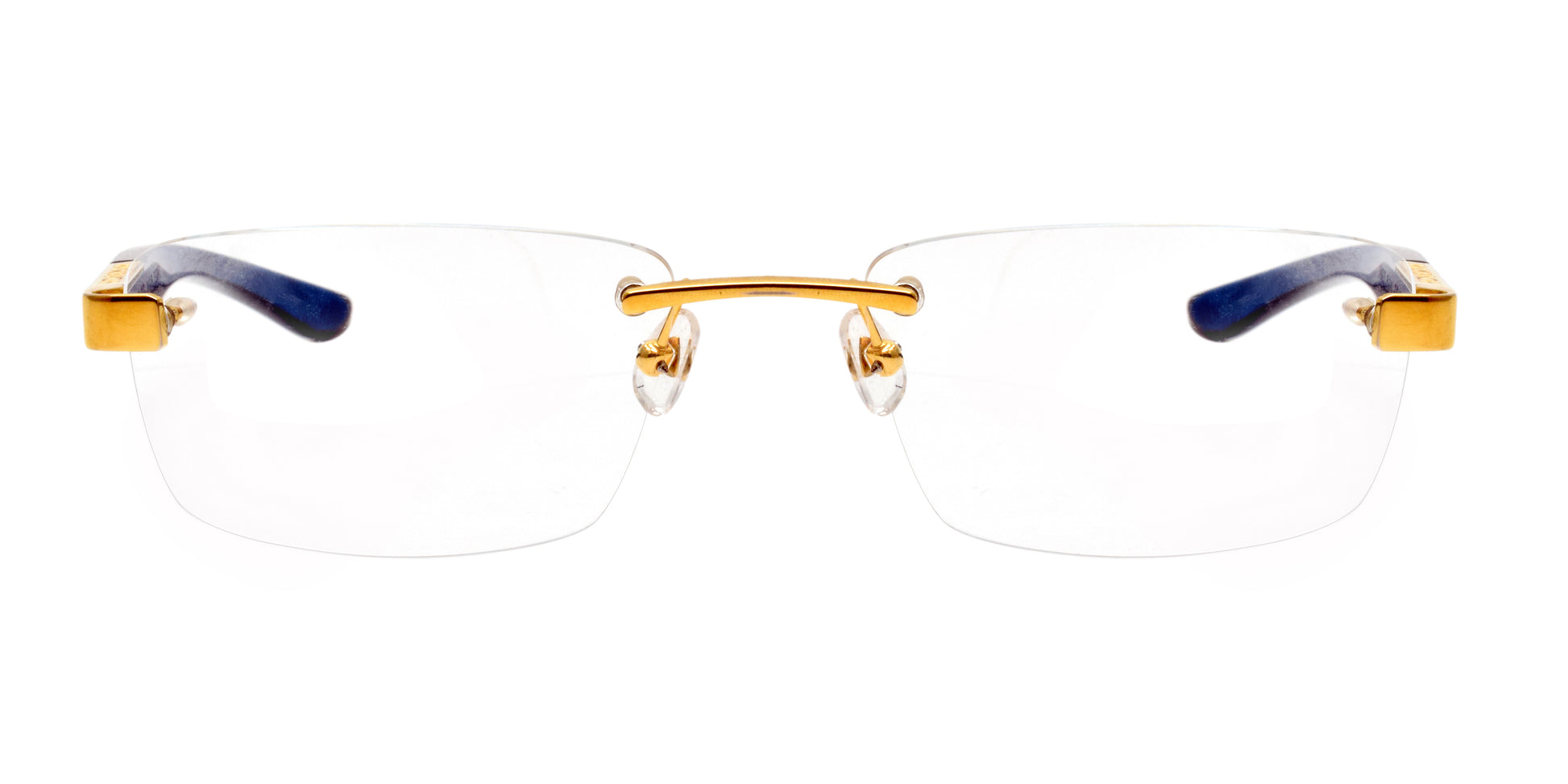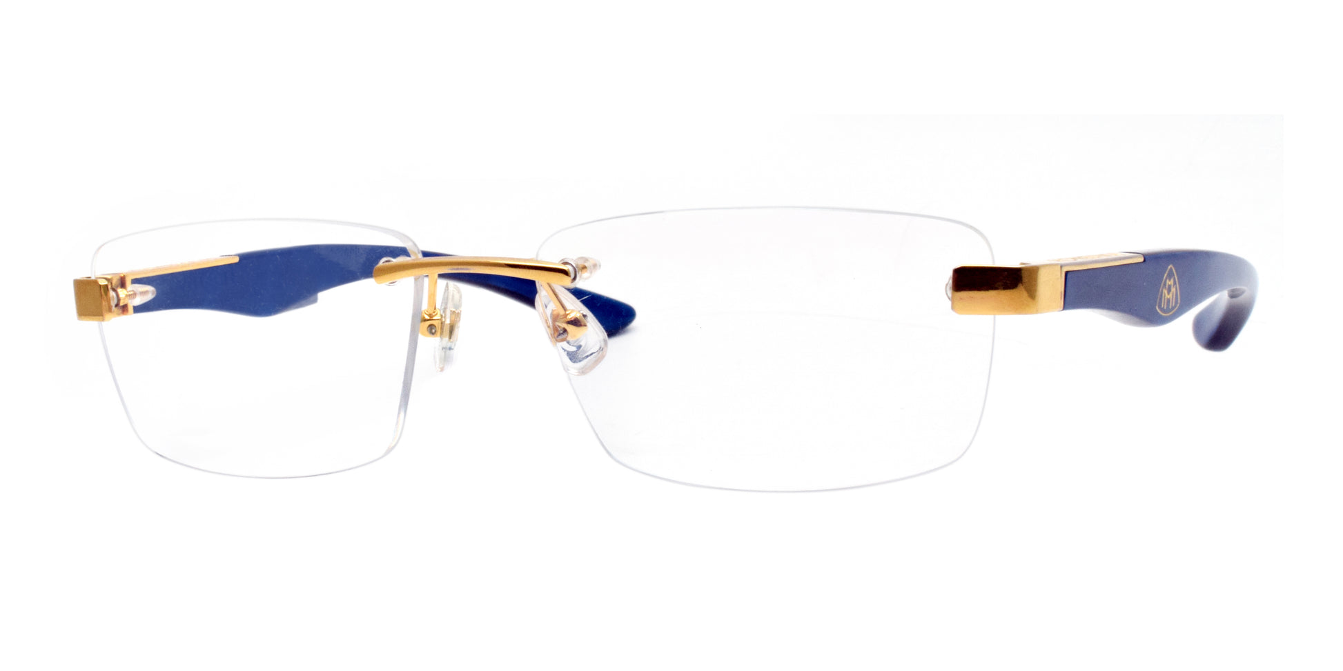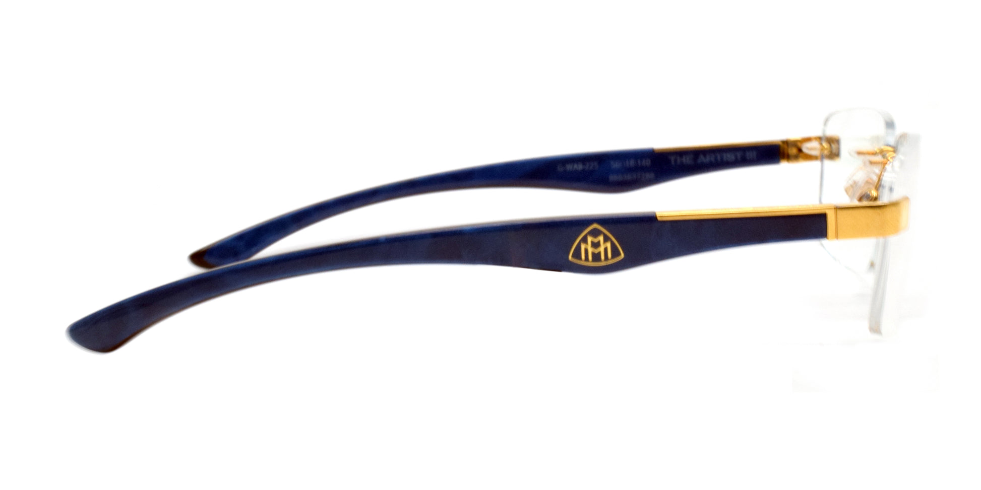 Experience luxury and art in one with MAYBACH THE ARTIST III G WAB Z25. This unisex rimless rectangle frame features a striking mix of metals and plastics in blue and gold. With moving nose pieces for a perfect fit, elevate your style with MAYBACH.