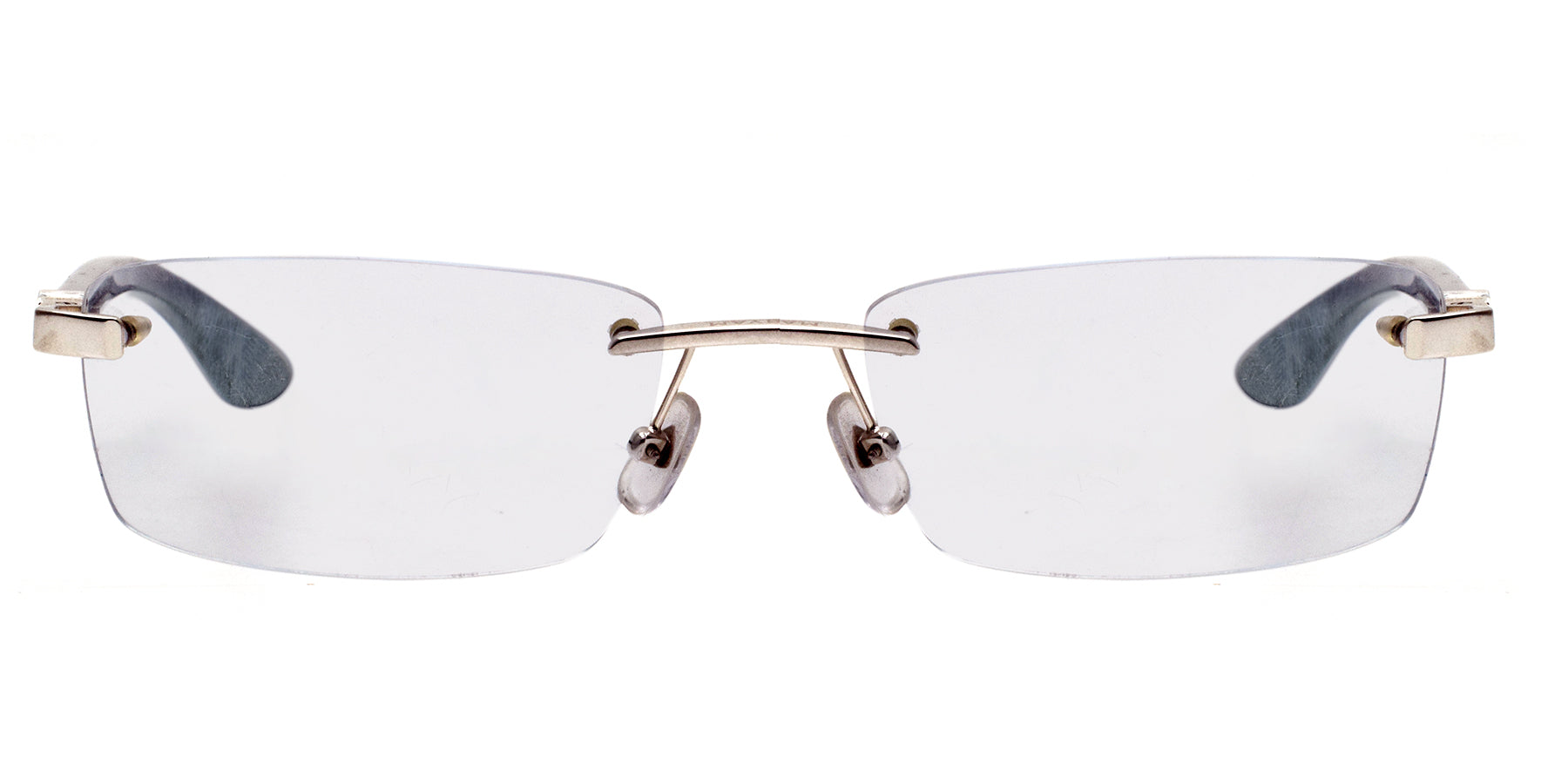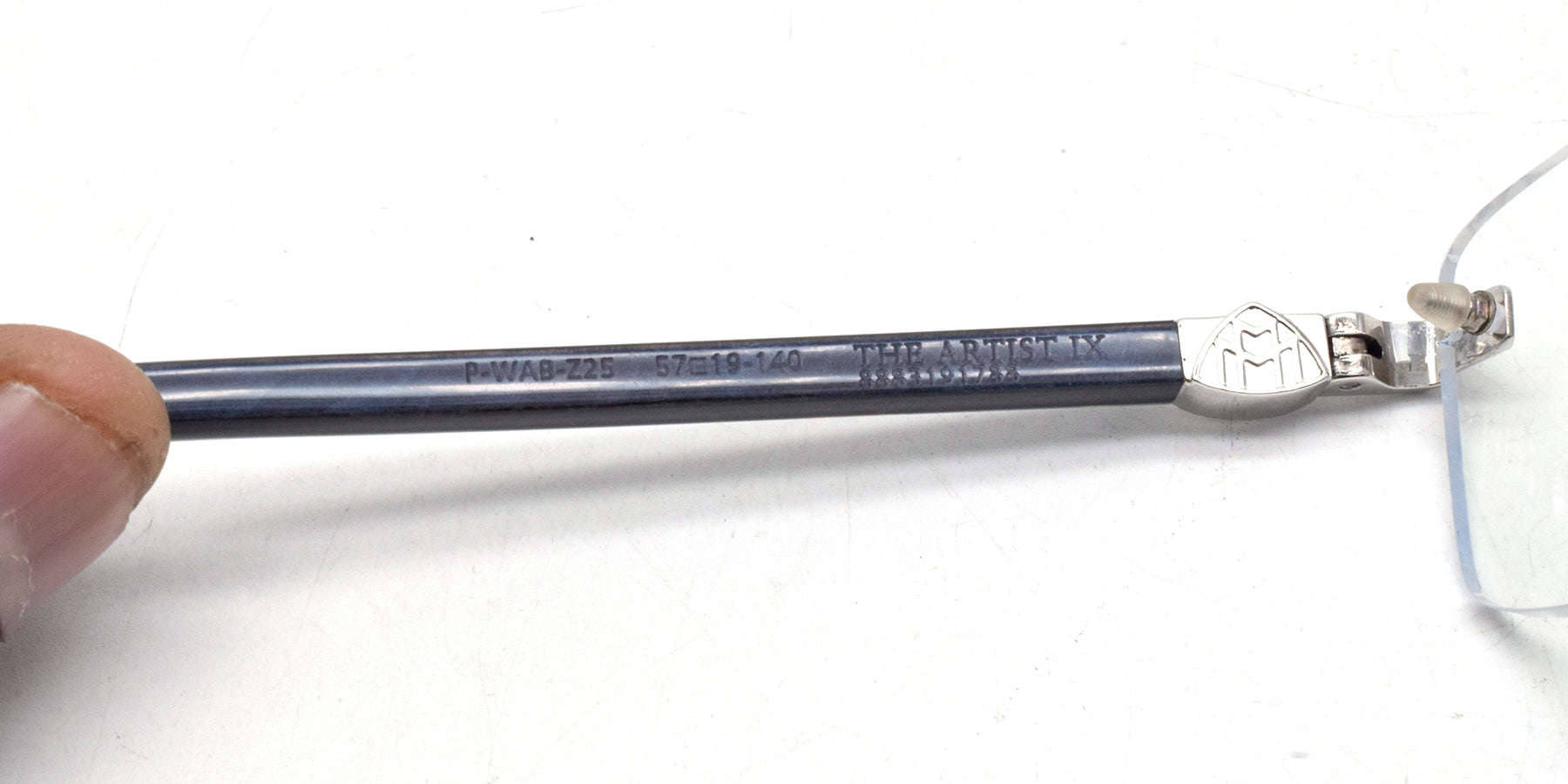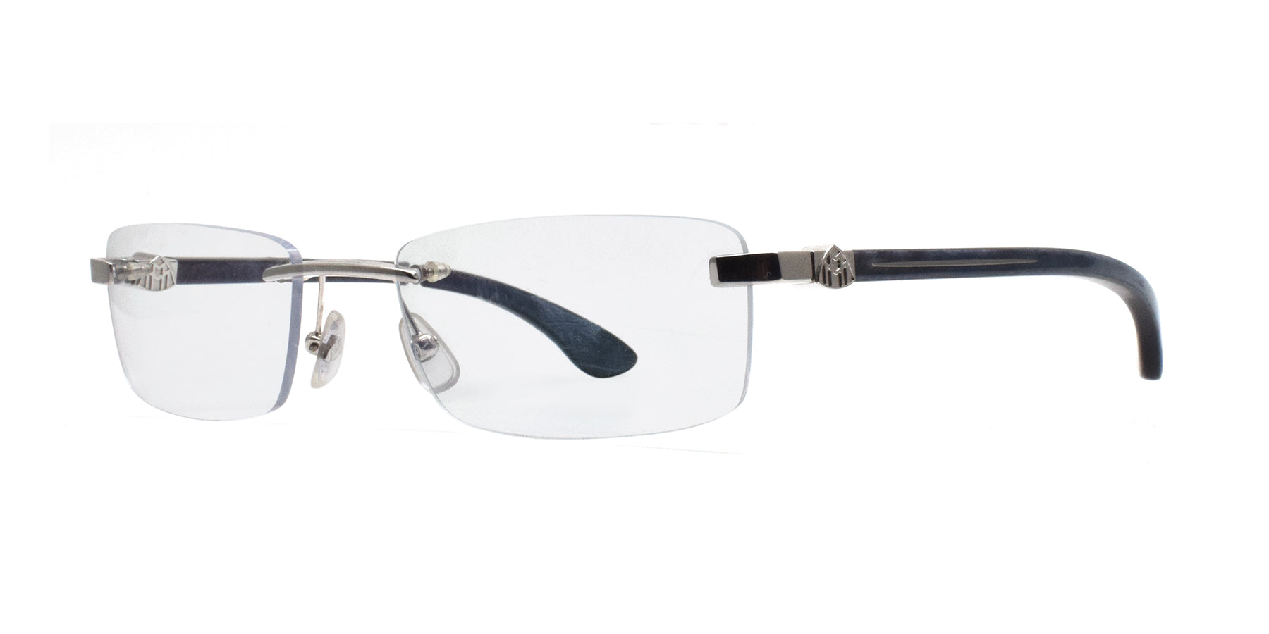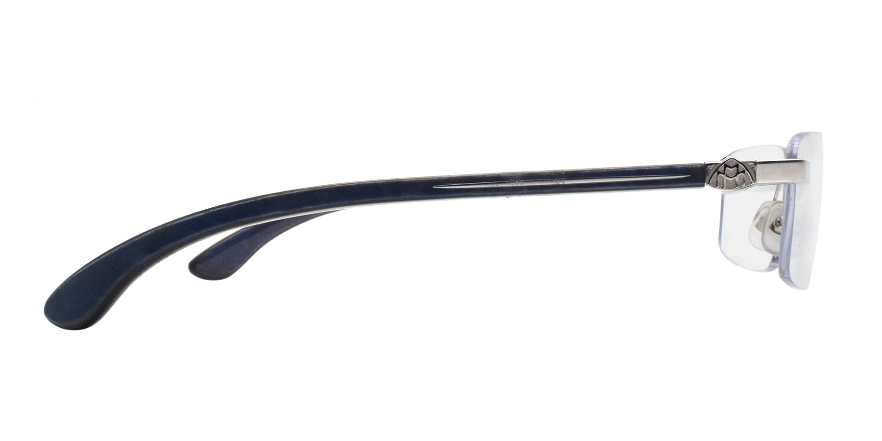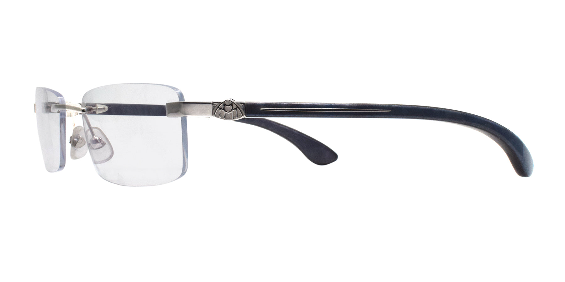 Expertly crafted for men, the MAYBACH THE ARTIST IX P-WAB-Z25 57/19 140 eyeglasses combine metals and acetate for a sleek and sophisticated look. The silver frame is accented with blue temples, adding a touch of color to the rimless, rectangle design. With moving nose pads for comfort.