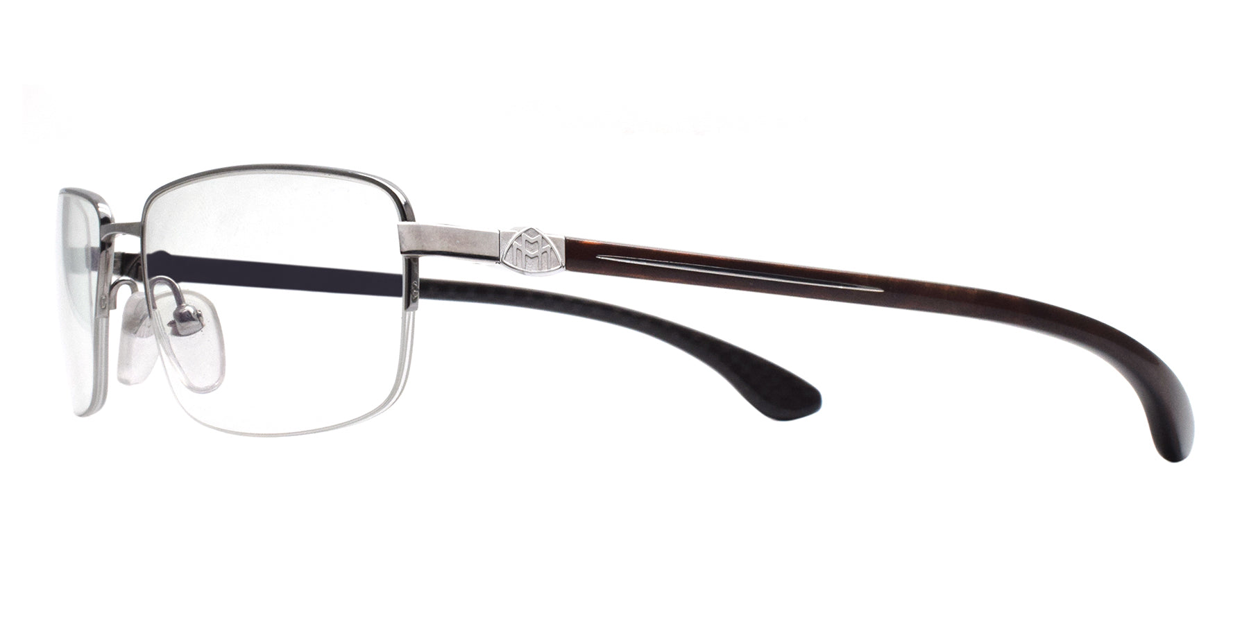 The MAYBACH THE HEDONIST VI R-WX-Z25 58/19 145 is a luxurious men's eyewear, crafted with a combination of metals and acetate for durability and style. The silver frame and brown temples add a touch of elegance, while the Supra Moving Nose design ensures a comfortable fit. Its rectangle shape is perfect for a professional and sophisticated look.