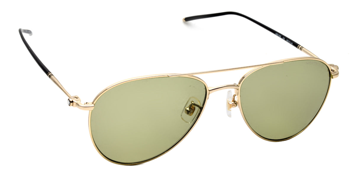 MONT BLANC 0128S 003 sunglasses offer a classic and stylish look for men with its gold metal frame and full frame design. The moving nose pads provide a comfortable fit, while the aviator style adds a touch of sophistication. With a size of 58/17 and 145mm temples, these sunglasses are the perfect choice for any fashion-forward man.