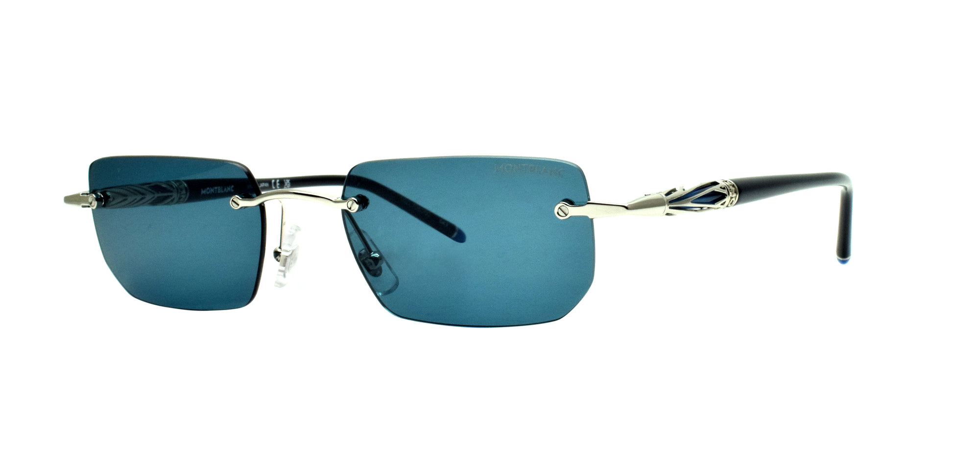 Experience luxury and sophistication with the MONT BLANC MB0348S 001 sunglasses. Made for men, this Rimless frame design features a combination of metal and acetate for a sleek and durable finish in silver and black. The rectangle shape provides a stylish look, while the moving nose allows for customizable comfort. Available in size 54/20 with a length of 150mm.