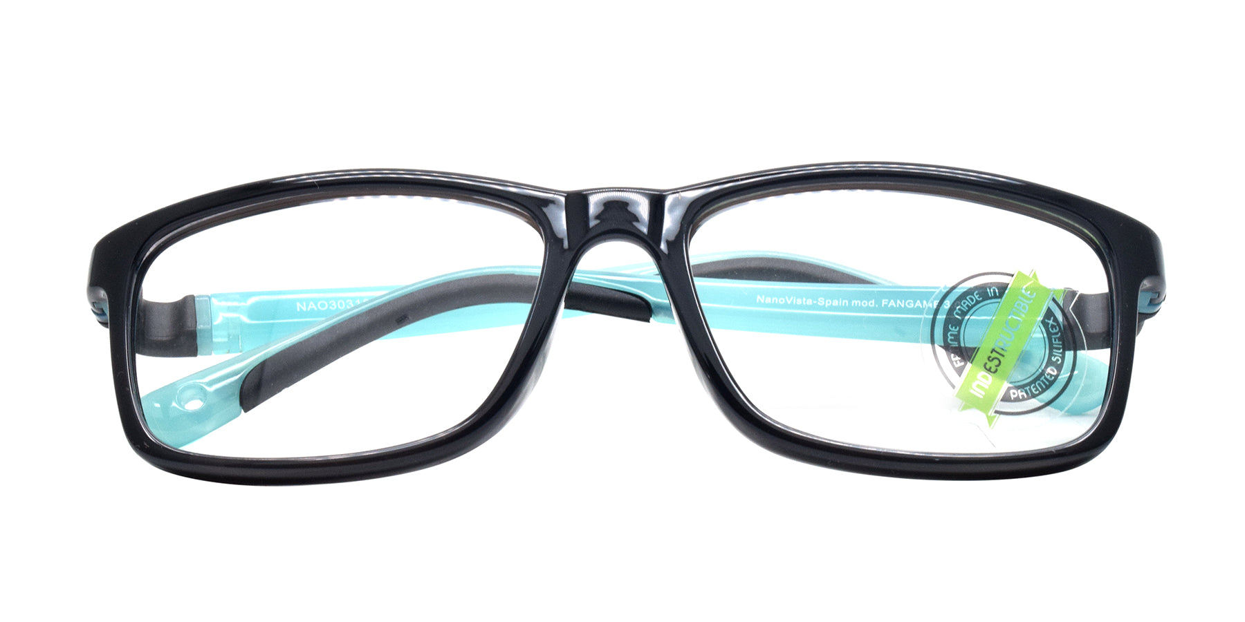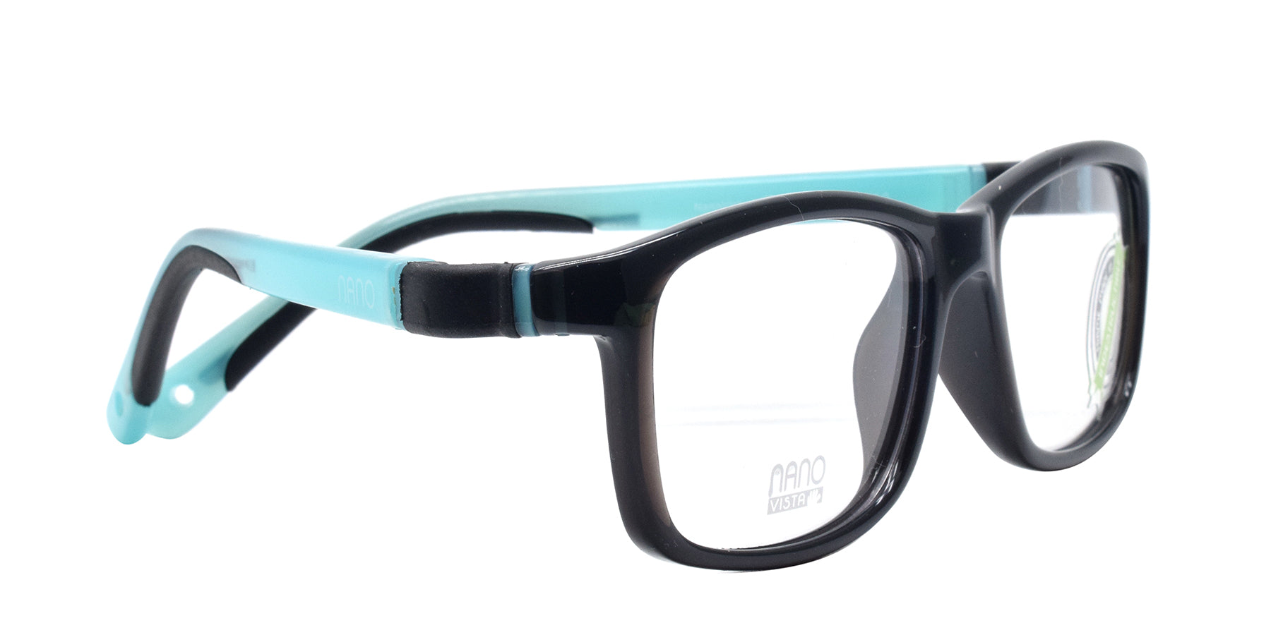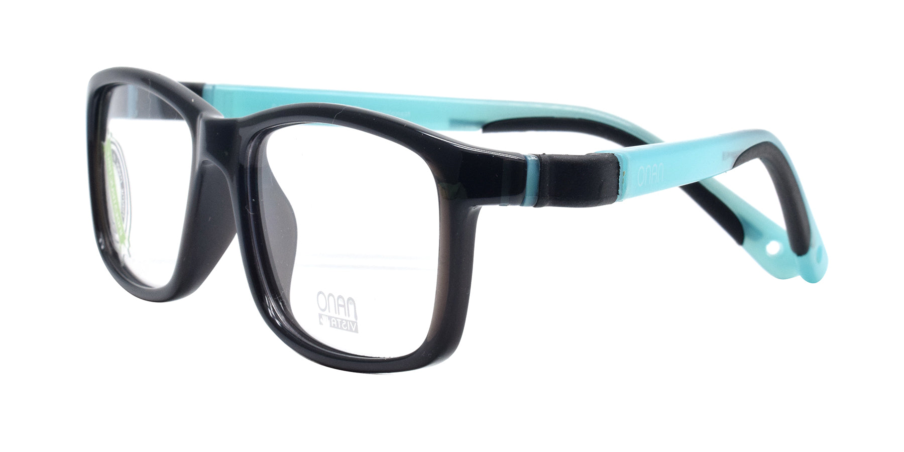 Introducing the NANO VISTA FANGAME3031052 BLK 52/15 133, a top-of-the-line child's eyewear that combines the durability of acetate with a sleek black and sky blue design. The full frame and fixed nose offer superior support and comfort, while the rectangular shape provides a modern look. Expertly crafted for your child's vision needs.