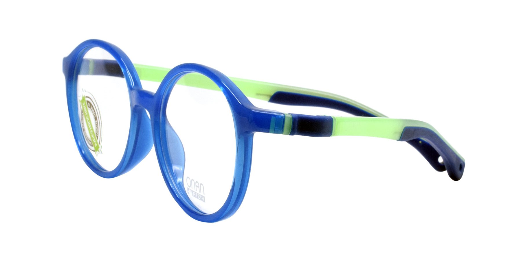 Discover the sleek and sturdy design of the NANO VISTA FLICKER3180748 BLUGRN 48/15 132 glasses. Made with high-quality acetate, these full-frame glasses offer a secure fit for your child. The fixed nose design ensures comfort, while the round shape adds a touch of style. Available in blue-green for a pop of color.