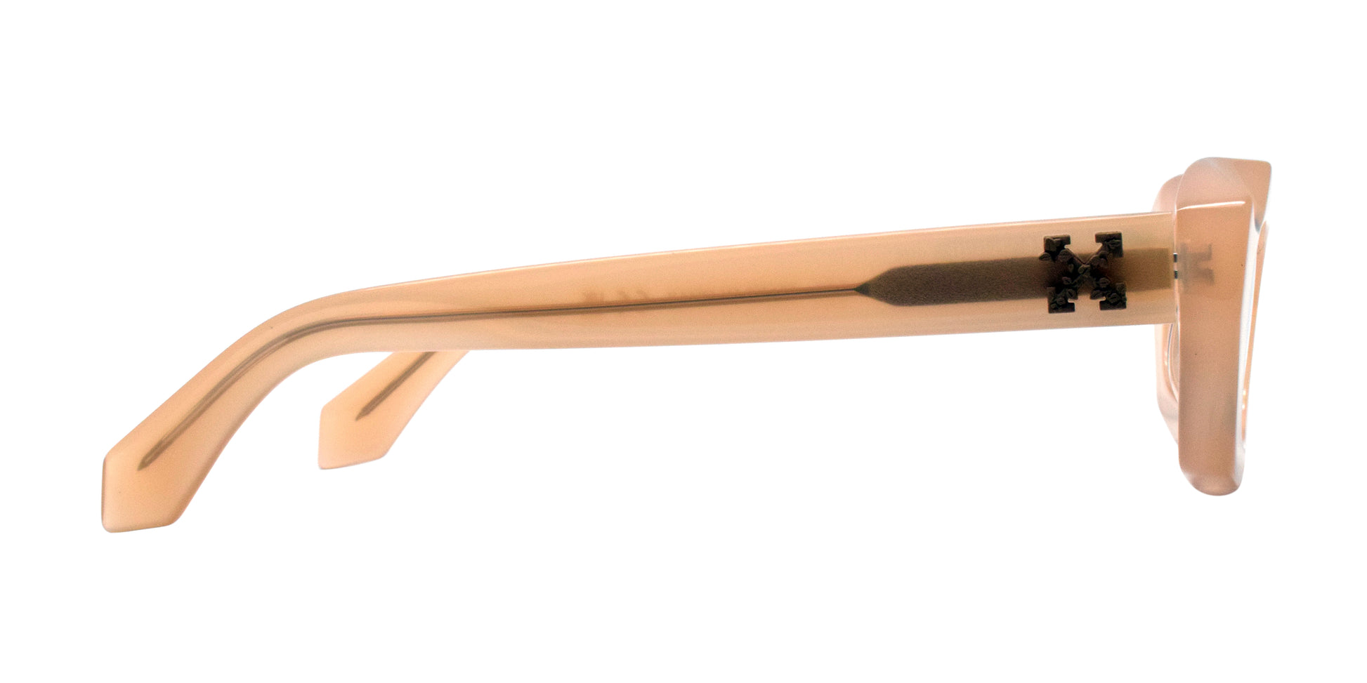 These OFF-WHITE OER1092 1760 glasses feature a full-frame design with fixed nose pads for a secure fit. The transparent brown and black acetate frame is both stylish and durable. Perfect for women looking for a reliable and fashionable accessory.SUNGLASS