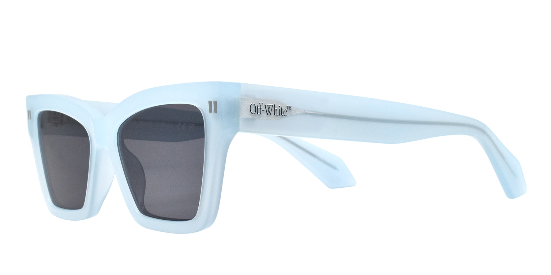 The OFF-WHITE OERI110 4007 54/16 145 is a sky blue full-frame acetate sunglass for women. The fixed nose and square shape provide a comfortable fit for all-day wear. Expertly crafted with 100% acetate, this elegant sunglass offers both style and durability. Perfect for any occasion, this accessory is a must-have for any fashion-forward individual.