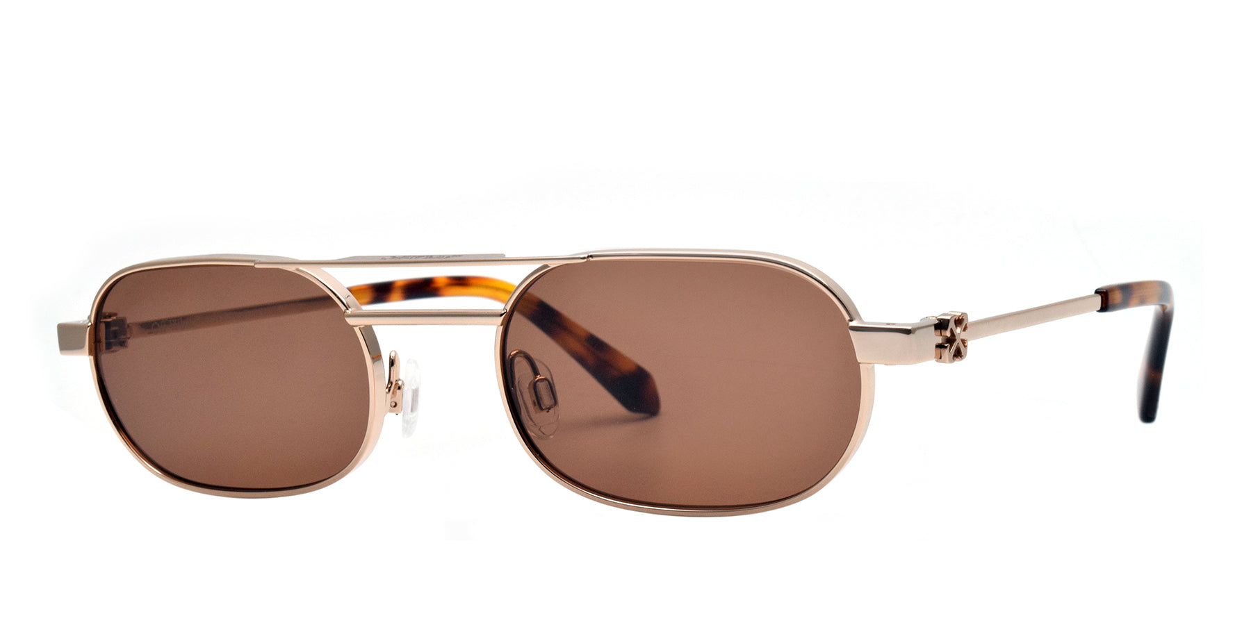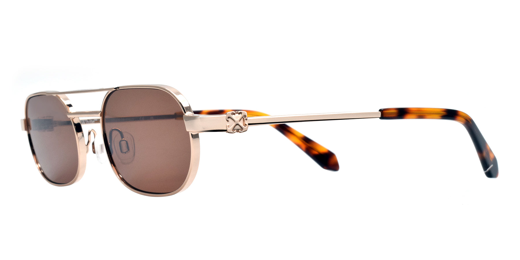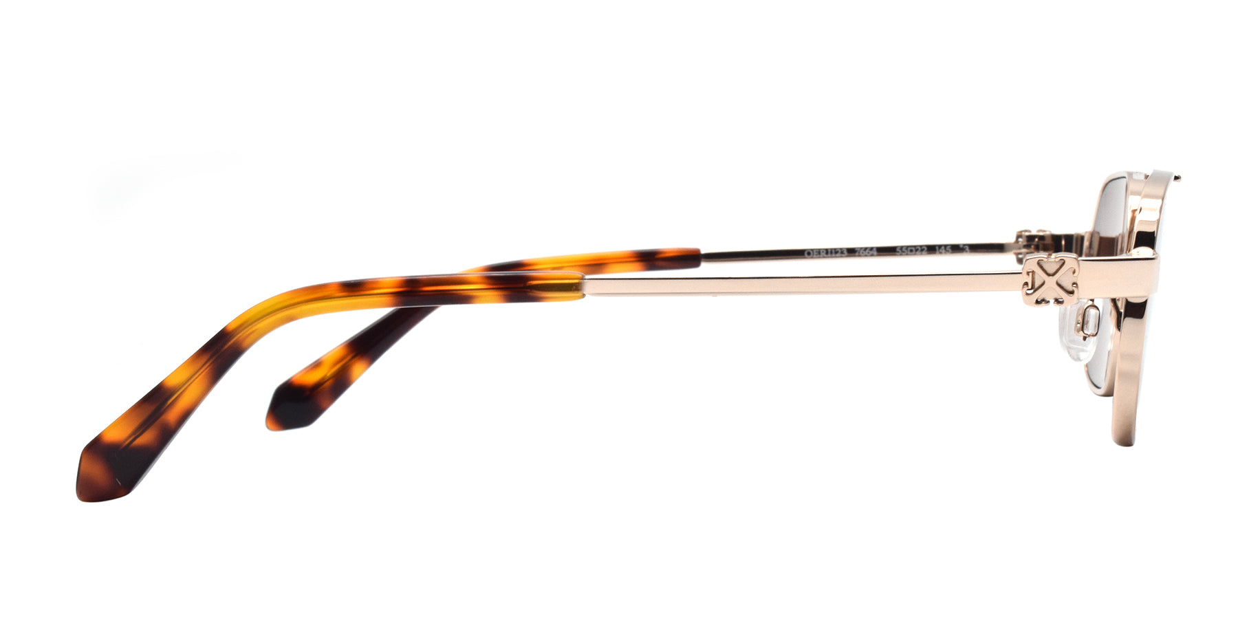 Introducing the OFF-WHITE OERI123 7664 55/22 145 sunglasses for men. These full frame sunglasses feature a unique rectangle shape and moving nose piece, crafted with high-quality gold metals. Expertly designed and scientifically tested to improve your vision and elevate your style.
