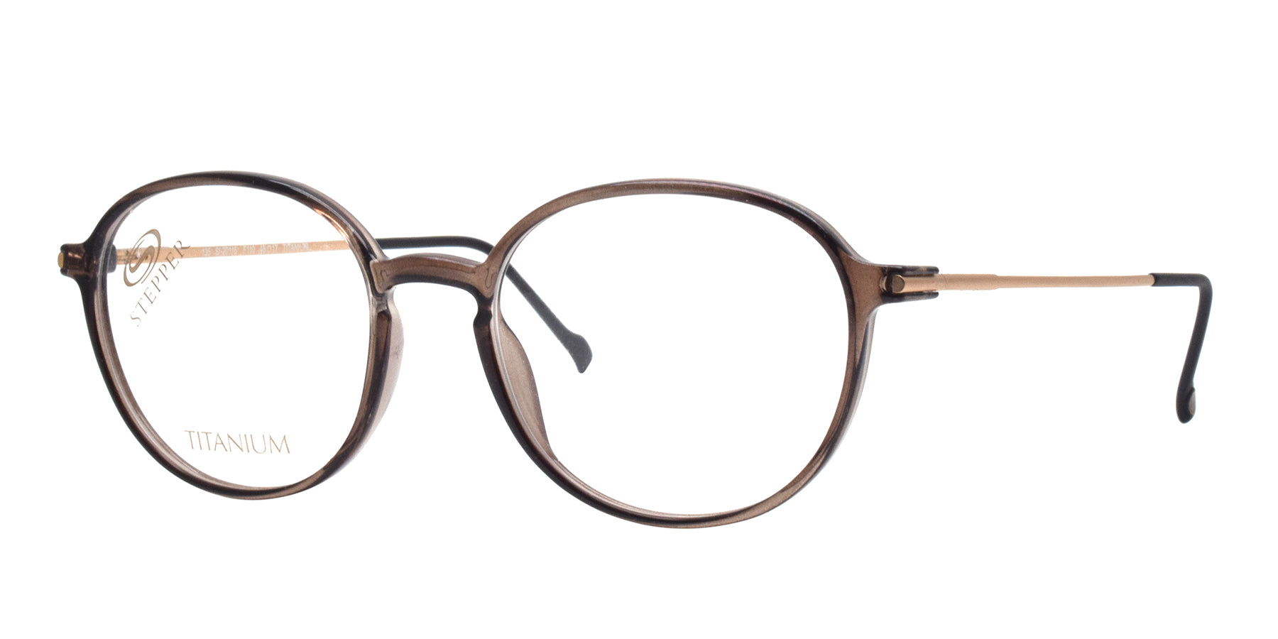 The STEPPER SI-20116 F110 48/17 135 is a unisex, full frame glasses with a titanium frame and acetate metals in a classic round shape. With a fixed nose for comfortable wear, these glasses are both stylish and durable. The grey and gold accents add a touch of sophistication to any look.