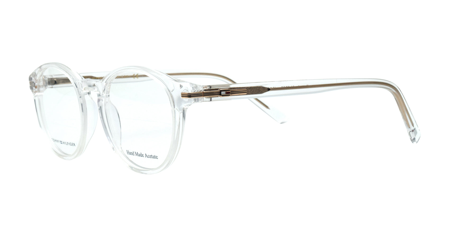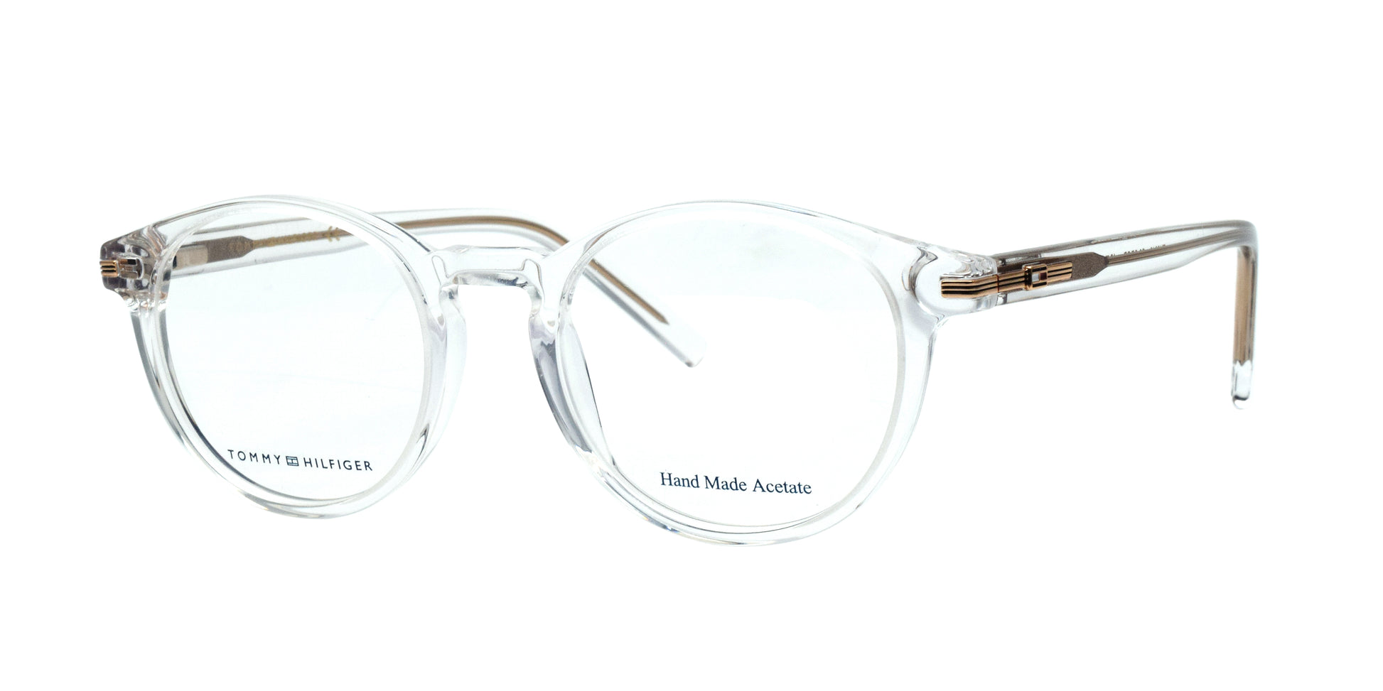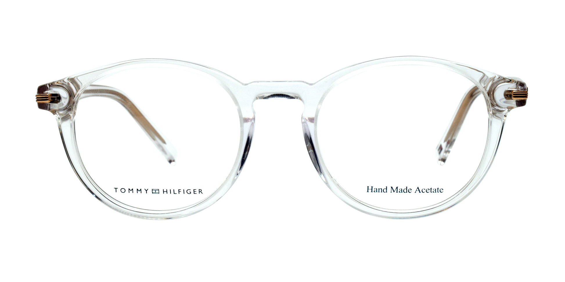 Expertly crafted by TOMMY HILFIGER, this full frame plastic glasses features a fixed nose and round design for a comfortable and stylish fit. The transparent frames give a modern touch to the classic round shape. Perfect for men, these glasses are a must-have.